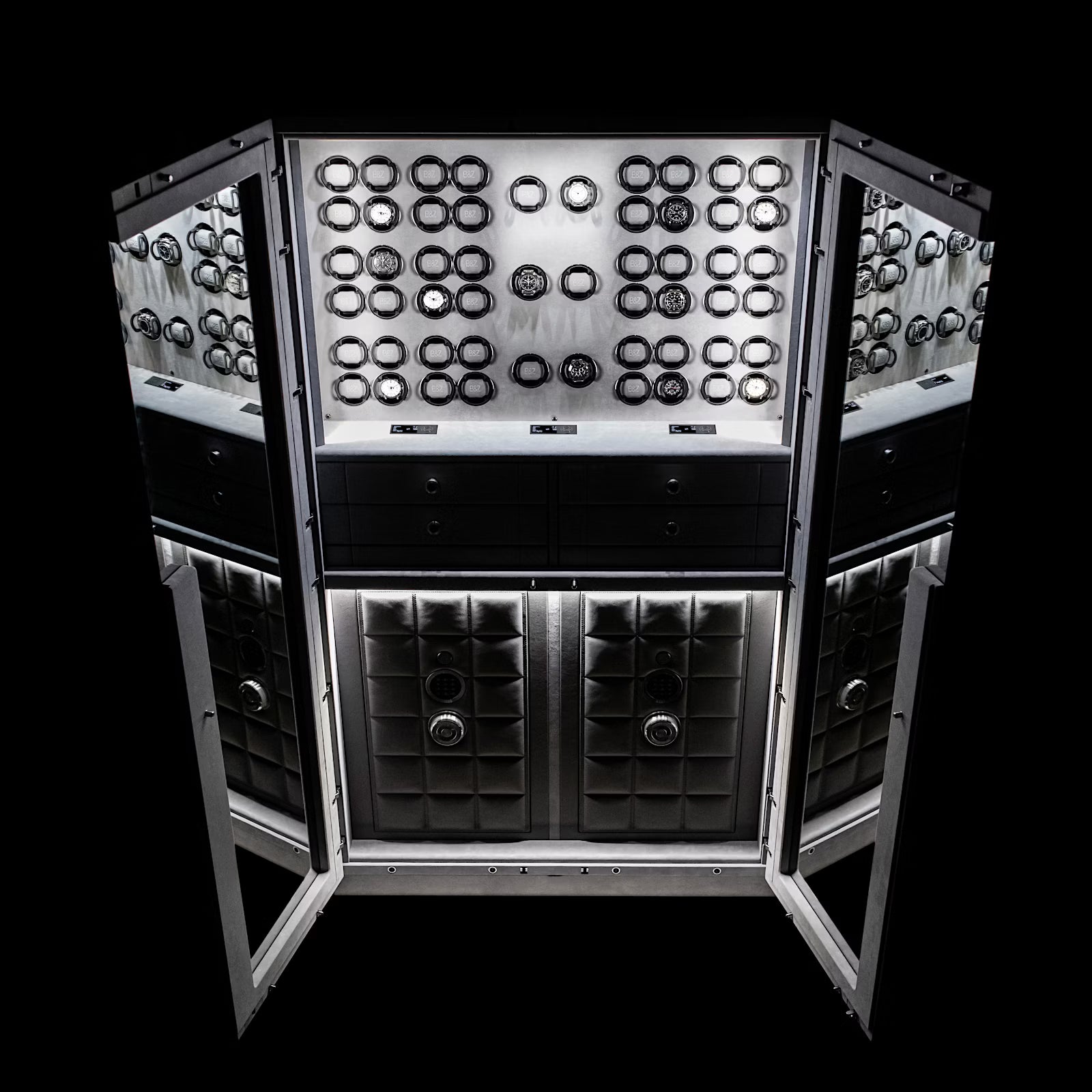 This extraordinary masterpiece was designed for a watch enthusiast with a keen sense of aesthetics and technology. In close collaboration with the customer, a safe ensemble was created, not only impressing with its functionality but also integrating into the living space as a multidimensional statement.