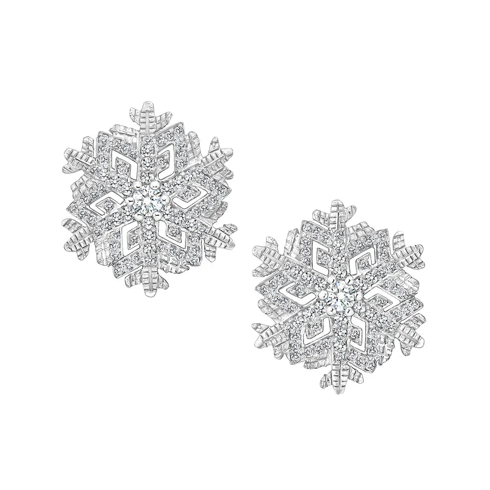 Inspired by nature’s most delicate winter creations, the Fabergé Heritage Platinum Diamond Snowflake Stud Earrings capture the quiet brilliance of freshly fallen snow in a pair of jewels designed to illuminate every occasion. Crafted in platinum, each intricately sculpted earring features a geometric snowflake motif, measuring 12mm in width, and is adorned with sparkling round diamonds meticulously set to enhance its icy radiance and crystalline symmetry.