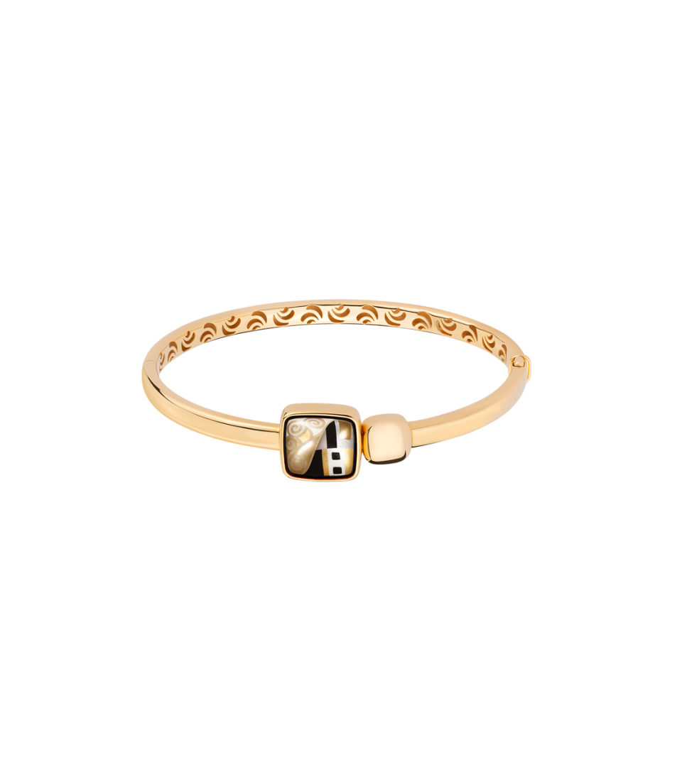 The Golden Square bracelet impresses with its straightforward simplicity and geometric shape. The enamel, with its three-dimensional pyramid look, on one side, catches the eye as well as the smaller 18ct ‘Golden Square’ on the other. The FREYWILLE wings on the inside of the 18-carat gold bracelet are a beautiful, special feature.